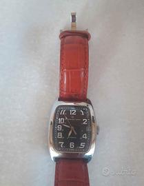 Orologio da polso Officina del tempo Doppio cinturino: uno in pelle di colore rosso e uno in acciaio Funzionamento automatico Fornito con scatola in radica e scatola esterna originali. Il cartellino riporta il codice del telefono e il prezzo pagato a suo tempo. Acquistato circa 15 /20 anni fa Maneggiato qualche volta per farlo funzionare. Bellissima idea regalo