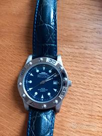 Orologio da uomo marca Regolo modello 202020, anni '90, colore blu, cinturino in pelle blu. Diametro mm. 40