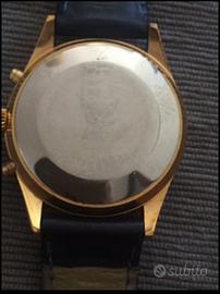 OROLOGIO DA POLSO, MARCA STENDARDO MODELLO IMMERSION REX, MOVIMENTO CARICA AUTOMATICO,CALIBRO VALJOUX 7750, CASSA PLACCATA D'ORO CINTURINO IN PELLE DI COLORE BLU' FIBBIA ORIGINALE, SENZA SCATOLA E DOCUMENTI, CONDIZIONI BUONE DI SECONDA MANO CON SEGNI DI USURA ASSENTI O APPENA VISIBILI, GENERE UNISEX, DIAMETRO 38 MM., VETRO ZAFFIRO, QUADRANTE BLU' CON CON INDICI RAFFIGURANTI VARI STENDARDI MARINARI, FONDELLO IN ACCIAIO A SCATTO.