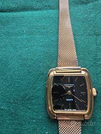 Elegante orologio da polso Longines con cassa rettangolare e quadrante nero.