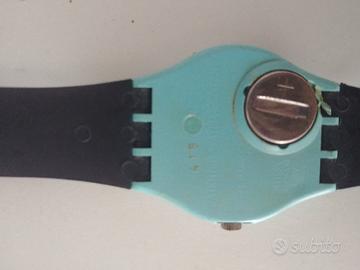 modelloSwatch Gent Cayman (GN137). Fa parte della collezione Swatch Standards del 1994 ed è stato disegnato dall'artista Louise Gibb.