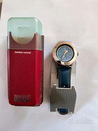 Orologio da polso Swatch "IRONY NABAB" modello Starshooter. Cassa massiccia in acciaio inossidabile, diametro 44,5mm circa, colore blu con numeri arabi e datario. Movimento al quarzo svizzero, cinturino in pelle blu chiaro con cuciture a contrasto color arancio. Mai usato. Contattami se sei realmente interessato. Prezzo trattabile.