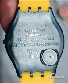 Swatch Skin 1997 SFN101 Amarillo NUOVO nella sua custodia originale Display Analogico