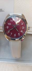 Orologio da polso "solotempo vespa" originale art. cod. 605317M00R come nuovo, con astuccio originale. cassa in acciaio, quadrante rosa scuro e cinturino in pelle colore bianco, pila nuova appena sostituita.