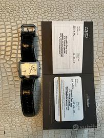 Unico proprietario orologio da uomo ultrapiatto con certificato di garanzia. Acquistato nel 2005 modello ZB1401C dual time. Usato pochissimo quadrante bianco con cinturino nero elegantissimo. Bisogna sostituirgli la pila. Con scatola originale full set non scambio. Se visualizzi l’annuncio l’oggetto e’ disponibile. Vendita tra privati formula visto e piaciuto, reso non previsto. No parziali permute. Modello similite a Cartier o Rolex