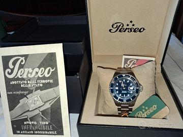 vendo stupendo orologio automatico uomo marca Perseo sub,200 mt. Swiss made. del 2022 movimento Valjoux , senza graffi con scatola e controscatola e garanzia,dimensioni cassa 42mm ,vetro zaffiro ,movimento Swiss made Oyster ,quadrante blu scuro molto raro .