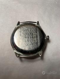 Causa inutilizzo: vendo stupendo orologio da polso Vetta Stainless Steel Back 5775, movimento meccanico non perfettamente funzionante, marcia oraria non costante, scatti durante l’uso del tiracorda. Purtroppo essendo rimasto fermo per alcuni anni, ma soprattutto considerando l'età: necessita di una revisione totale. Inoltre come potete osservare dalle foto: entrambi i perni che reggono il cinturino sono deformi in quanto riposizionati in sedi diverse sulla corona ormai usurata dal tempo. Non essendo un intenditore non riesco a fornire ulteriori informazioni a riguardo, ma questo modello dovrebbe perlomeno risalire ad un periodo che va fra gli anni 50 ed i 60. Per qualsiasi ulteriore informazione non esitate a contattarmi: sarò a vostra completa disposizione.