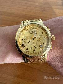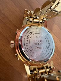 Orologio da polso LIGE con movimento al quarzo, vetro antigraffio, cinturino in acciaio inossidabile placcato in oro, 3 ghiere secondarie e resistente all’acqua(3atm). Assenza di graffi e perfettamente funzionante.