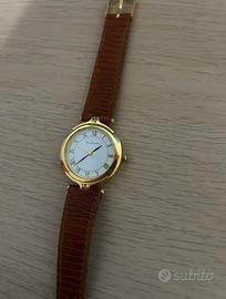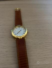 Orologio da polso vintage Renato Balestra. Cinturino in pelle e quadrante color oro.