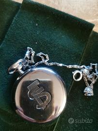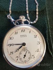 Orologio da tasca Breil Ancre originale, Ferroviedello Stato, Swiss Made, con movimento meccanico a carica manuale, 17 jewels e sistema Incabloc. L’orologio è funzionante ed è completo di catena. Sul retro è presente il monogramma FS – Ferrovie dello Stato, elemento che lo rende particolarmente interessante per appassionati e collezionisti di oggetti ferroviari e vintage. Quadrante bianco con numeri arabi e piccolo contasecondi a ore 6. Cassa in metallo, non in argento. Condizioni generali buone, con normali segni del tempo e dell’uso, visibili anche in foto. Oggetto vintage originale, adatto per collezione, esposizione o regalo. Caratteristiche principali: Marca: Breil Ancre Movimento: meccanico a carica manuale Rubini: 17 jewels Sistema: Incabloc Provenienza: Swiss Made Marchio sul retro: FS Ferrovie dello Stato Completo di catena Funzionante Prezzo richiesto: 140 euro Si vende con formula visto e piaciuto. Disponibile a inviare ulteriori foto o dettagli su richiesta.