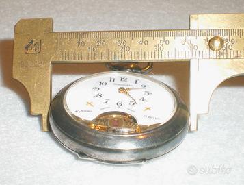 Ha un diametro di 42 mm. e uno spessore di mm.12 per un peso di gr. 66 . Nuovo e perfettamente funzionante , presenta solo una leggera ossidazione sulla cassa ( evidente sul retro ) dove si nota la differenza tra la parte protetta e quella scoperta . Non presente scatola o documenti , le fotografie sono originali e parte integrante dell' articolo in vendita .