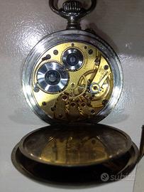 Vendo bellissimomo orologio da tasca Longines autentico. In ottime condizioni e perfettamente funzionante .Prodotto intorno al 1930.. Cassa in nichel con apertura a tre cerniere: lunetta,fondello e antipolvere. Diametro mm. 55. Indici in numeri romani con ruota dei secondi.Meccanismo numerato e logato "EFCO Longines" simbolo dal 1889 con la clessidra alata in omaggio del fondatore Ernest Francillon .Quadrante in ceramica originale senza alcuna crepa nè scalfitura o rottura. Rimessa dell'ora a poussette a ore 13. All'interno del meccanismo sulla scala graduata, sono riportate le sigle A-R e F-S per il mercato straniero che permettevano la variazione della durata dell'oscillazione del bilanciere per regolare il tempo.