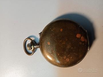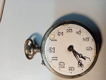 Vecchio Orologio da tasca mancante del vetro . Meccanismo completo ma non funzionante. Bilanciere integro . Se caricato gli ingranaggi girano ma il bilanciere non si muove, se si rimette l ora le lancette girano insieme. Orologio venduto per pezzi di ricambio.