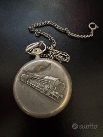 Fondello: Il retro presenta un'incisione in rilievo di una locomotiva a vapore, un dettaglio tipico degli orologi legati al mondo ferroviario.