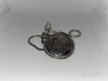 Vendo orologio da taschino PEARL, con incisione di treno a vapore sul fronte, decorazioni floreali sul retro e movimento al quarzo, per chi ama l’eleganza d’altri tempi senza rinunciare alla funzionalità moderna.