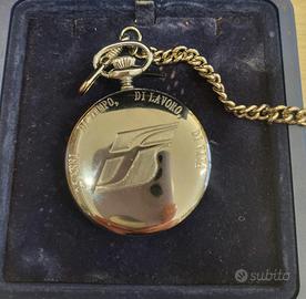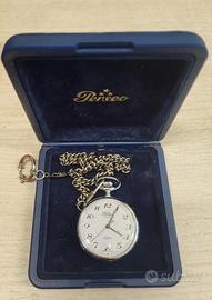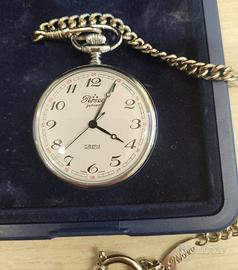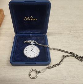 splendido da tasca perseo fs junior edizione celebrativa speciale dedicata ai dipendenti delle ferrovie dello stato italiane , per il 25 anni di carriera. quadrante color bianco smaltato con numeri arabi neri e minuteria rossi. movimento meccanico manuale di manifattura Svizzera (swisse made) affidabile e robusto . cassa in acciaio cromato diametro 52/53mm .fondello con l'incisione della iconicica FS. completo del suo cofanetto originale in velluto blu e la catena originale.