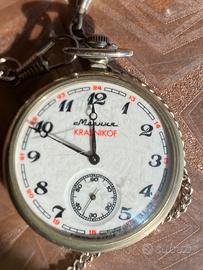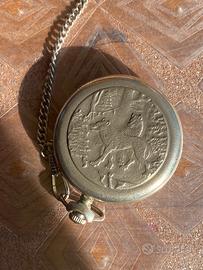 Bellissimo orologio russo da tasca con la sua catinella originale made in ex CCCP perfettamente funzionante.. da segnalare alcune righe su il vetro .. dietro e raffigurato due Lupi …