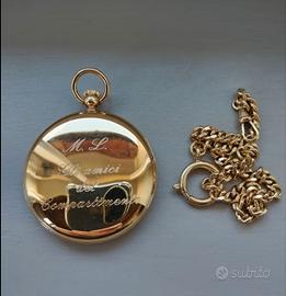 Vendo bellissimo orologio da tasca vetta, perfettamente funzionante completo di catenella. Probabilmente faceva parte di un regalo di pensionamento
