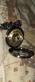 Orologio da taschino - Orologio da tasca con scheletro a carica manuale con lente d'ingrandimento con coperchio speciale, numeri antichi romani Fob orologio da uomo con catena