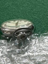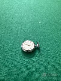 Vendo splendido orologio da taschino marchio Loridal a carica manuale appena revisionato movimento svizzero con marchio “swiss made” ad ore 6 sul quadrante, detto anche “orologio monetina” per le dimensioni ridotte, solo 32 mm diametro della cassa. Vige la formula del visto e piaciuto. Orologio in ottime condizioni nonostante gli anni, solo qualche leggero graffio sulla cassa appena percettibile.