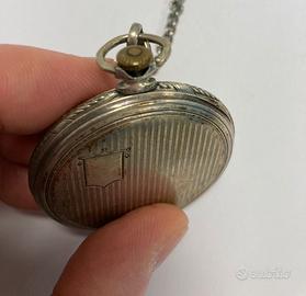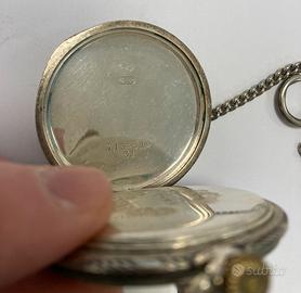 Orologio da taschino CYMA in argento 800, perfettamente funzionante, diametro 47 mm spessore circa 8 mm, lunghezza catena (non in argento) 33 cm.