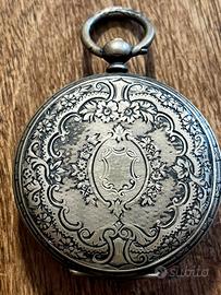 orologio da tasca antico, realizzato in argento.