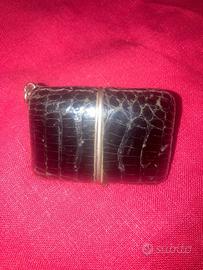 orologio da taschino MOVADO in argento con chiusura mobile in argento e pelle di coccodrillo nera.