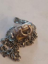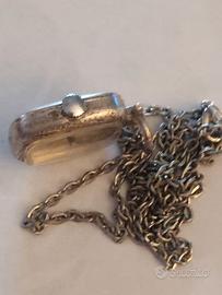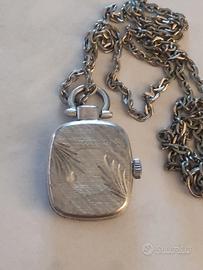 Orologio da collo o taschino Argento 900 segnato sul fondello Reston 17 Rubini antichoc Donna carica manuale Suiss Made 2.5cm per. 2.2 cm con catena in acciaio usato ma funzionante con segni del tempo.Prezzo trattabile.