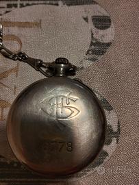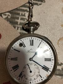 Bellissimo orologio da tasca originale d'epoca Perseo,meccanico a carica manuale, movimento calibro 6778.Quadrante bianco con numeri romani,cassa con fondello,incisione FS,piccola scheggiatura nel numero 11,ma perfettamente funzionante