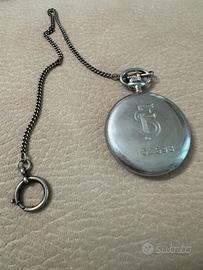Orologio da taschino Persio carica manuale con catenella è vintage il numero scritto dietro riguarda la matricola della persona, perché erano i dipendenti delle ferrovie dello Stato che lo usavano non ha rotture è ancora funzionante