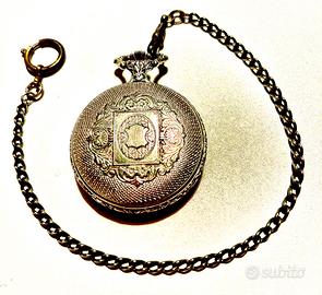Vendo bellissimo orologio da taschino marca Perseo, con sua protezione originale Perseo e con catena vintage, lunga 30 cm. L'orologio è perfettamente funzionante. Diametro totale 46 mm. Solo cassa 40 mm. Prezzo non trattabile.