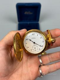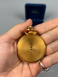 Retail 850€ - Il Perseo da tasca savonette serie 17110 ha movimento meccanico a carica manuale. Aspetto vintage con magnifico quadrante bianco e numeri arabi. Perseo è sinonimo di precisione svizzera ed eleganza italiana. Il modello 17110 è sobrio ed elegante. Cassa liscia in metallo lucidato PVD oro con diam. 49mm e spessore di 12mm. Accompagnato da catenella con moschettone ed elegante scatola Perseo.