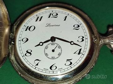 Splendido Orologio Vintage anni 40/50 della nota casa Lucerne, con cassa in acciaio decorato con tema caccia. Meccanismo a carica, movimento Eb 8800, un rubino.