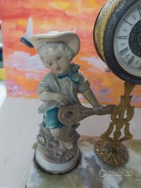 orologio da tavola antico in ottonee marmo con statuine e porcellana.