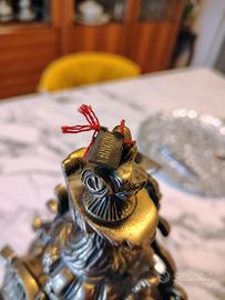 vendo orologio da tavolo stile barocco in ottone dorato firmato lancini. È un oggetto d'arte decorativa d'epoca.