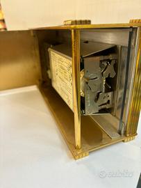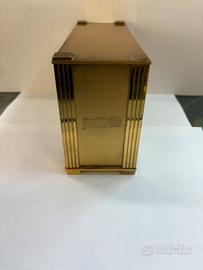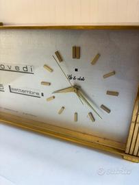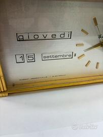 orologio calendario perpetuo da tavolo vintage di marca Robert Dessomville, modello "Electronic". Tipo: Orologio da tavolo con calendario automatico incorporato. Caratteristiche: Visualizzazione di giorno, data e mese, con movimento elettronico. Stile: Design vintage anni '60/'70 con cassa in metallo dorato.