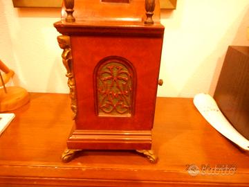 OROLOGIO DA TAVOLO IN LEGNO CON FASI LUNARI E SUONERIA AL PASSARE DELLE ORE. MECCANISMO COMPLETO CON CHIAVE RICARICA. DA REVISIONARE, MA FUNZIONANTE. VERO AFFARE. CONSEGNA A MANO SU ROMA.