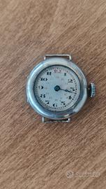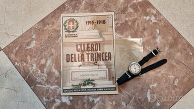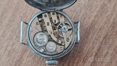 Pezzi di storia ❤️ Mini lotto originale con bellissimo orologio da trincea della prima guerra mondiale appartenuto ad'un soldato italiano ( in foto,di cui non conosco ne il nome ne la storia purtroppo) Funziona per uno/due secondi poi si ferma..(va pulito e oleato) Cinturino aggiunto successivamente non originale,diametro 27mm corona esclusa.Cassa argento 800 Movimento svizzero con scappamento ad ancora e finitura "Dorée" (ll colore dorato opaco dei ponti era ottenuto con un processo di doratura galvanica dell'ottone, standard per i movimenti di buona qualità dell'epoca per prevenire la corrosione) Molto probabilmente l'orologio è nato come modello femminile da taschino ed è stato trasformato in orologio da polso per necessità belliche. Nel lotto è compreso anche il volantino in foto ovviamente.