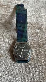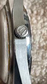Bulova Accuquartz 224 Il diapason incontra il quarzo: l’Accuquartz 224 Siamo nel 1971 e il “quarzo” è il futuro. Bulova ha un po’ dormito sugli allori, ma ormai adottare la nuova tecnologia è indifferibile. Gli americani avevano partecipato anche al consorzio CEH (Centre Eletronique Horloger, creato nel 1962 a Neuchâtel) per il Beta 21 e avevano ricevuto la loro quota di movimenti – da loro denominati 10EACD – incassati in un massiccio parallelepipedo d’oro con corona a sinistra. Data l’esiguità dei numeri e il costo spropositato è chiaro che non poteva essere neppure una soluzione tampone. In quattro e quattr’otto gli ingegneri americani approntano il calibro 224 “Accuquartz”, che permette di stare al passo coi tempi a costi minimi di adattamento. Un ideale ponte tra un presente invecchiato rapidamente e un futuro che è già arrivato. L’impianto resta quello del calibro 218, ma a guidare il tutto c’è un quarzo da 32.768 Hz. Il diapason ora vibra a 341,33 Hz, che corrisponde a una divisione per 96 della frequenza di oscillazione. Il suo utilizzo ora è soltanto di motore passo passo, perché ad alimentare o no le bobine ci pensa il chip di controllo Intersil. L’Accuquartz è presentato alla fiera di Basilea del 1971 e ha conosciuto le varianti 2241 e 2242 con i diversi tipi di datario. Oggetto da collezione perfettamente funzionante al 100%. Completo di scatola e garanzia.