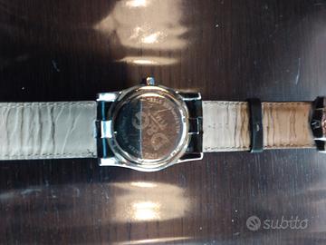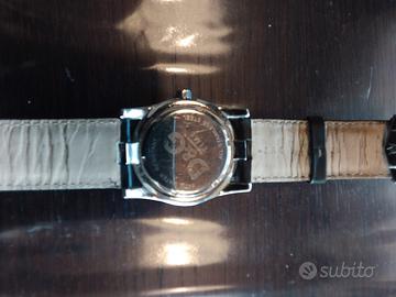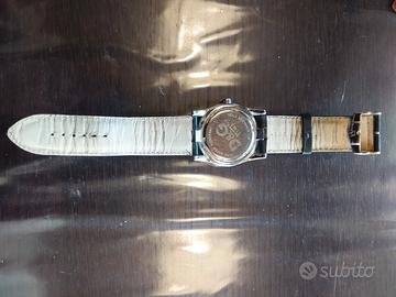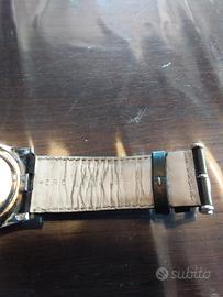 con cinturino in cuoio, funzionante, in buone condizioni. cinturino un poco usurato per l'utilizzo come mostrato in foto, quadrante con un paio di graffietti, sempre mostrati in foto. NO CONSEGNA A MANO SOLO SPEDIZIONE