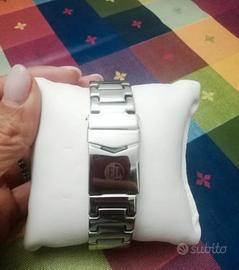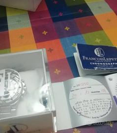 orologio da uomo Francois l'epatite in acciaio, analogico al quarzo, fondo bianco con cronografi blu e datatario . batteria nuova, orologio funzionante con istruzioni d uso e certificato di autenticità