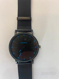 Vendo orologio da uomo, quadrante nero e blu, cinturino in rete, mai usato.
