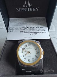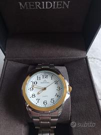 Orologio Meridien nuovo, mai utilizzato, ancora in scatola originale e con garanzia, cinturino in acciaio, cassa tonda circa 40 mm, movimento al quarzo.