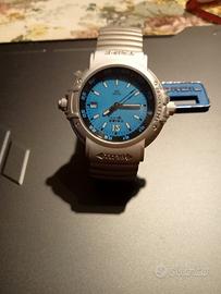 Orologio da uomo Tribe Breil al quarzo ,in acciaio satinato, cronometro un , quadrante azzurro e bracciale in acciaio elastico.Nuovissimo ,moderno ,leggero , con cartellino e astuccio originale .Prezzo ribassato.