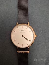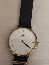 Orologio Daniel Wellington petit oro rosa con doppio cinturino nero di tessuto + oro rosa, misura diametro 36mm. Ottime condizioni!