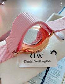 Orologio Daniel Wellington al quarzo, acciaio placcato oro rosato, con cinturino in nylon rosa, diametro cassa 36mm.