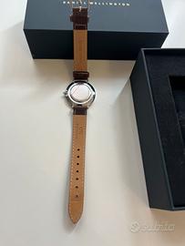 Orologio Daniel Wellington. Condizioni praticamente come nuove essendo che lo ho indossato pochissime volte perchè preferisco stili diversi (mi è stato regalato). Non presenta nessun segno di usura ed è venduto con la confezione.