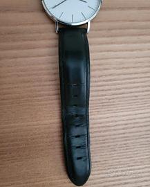 Orologio in pelle nera con cassa argento. funzionante a seguito di cambio batteria