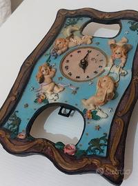 Vendo orologio da parete decorativo in poliresina effetto pietra, pesante e solido, riccamente decorato con angeli in rilievo, stelle, luna e motivi floreali.