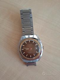 Orologio con cinturino in acciaio . carica manuale con data funzionante. Vetro da sostituire. Diametro 3 cm.